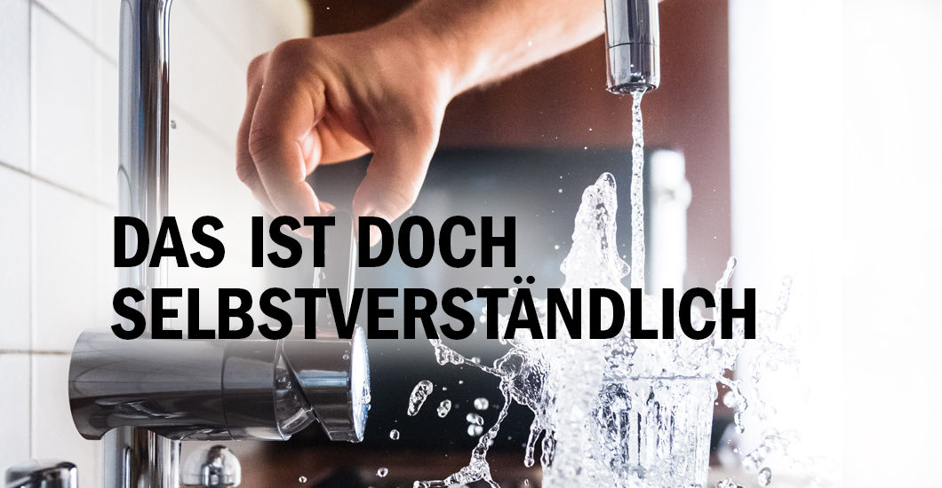 Drehe den Wasserhahn auf und Wasser kommt heraus;